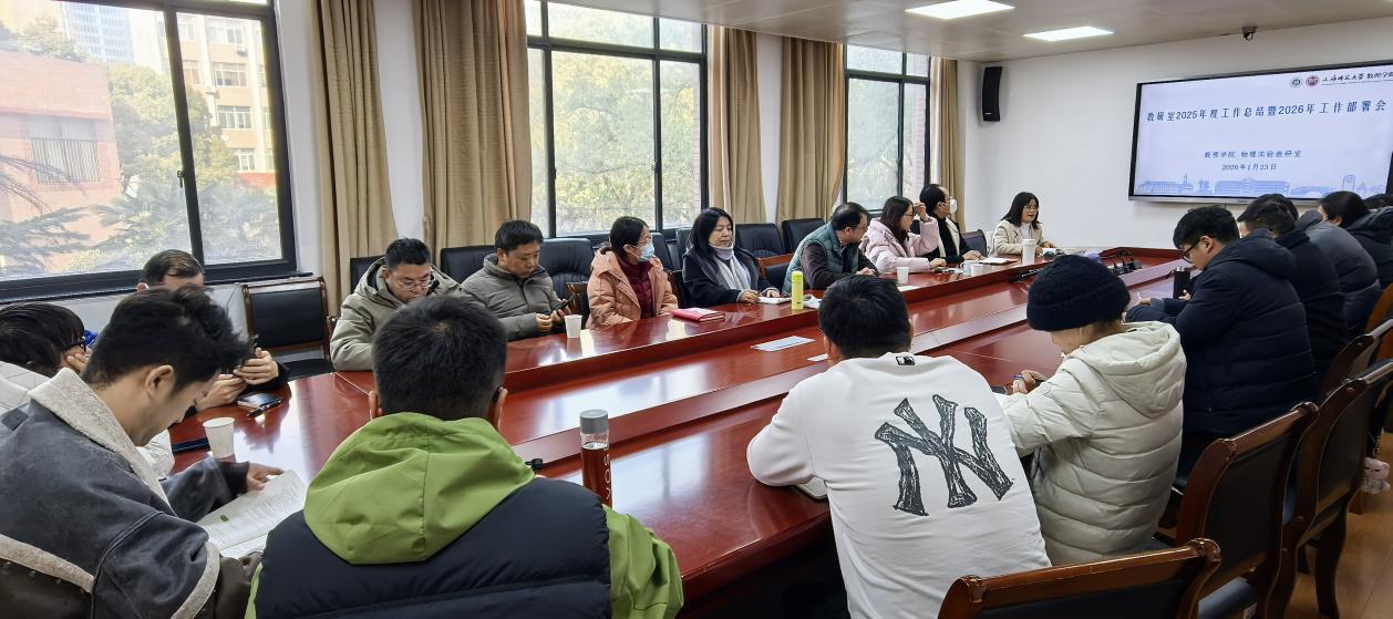 2026年1月23日下午,物理实验教研室在徐汇校区数理学院10号楼222会议室召开2025年度工作总结暨2026年工作部署会议。学院院长兼物理上海市级实验教学示范中心(上海师范大学)主任刘锋,副院长林方婷及教研室成员出席会议。