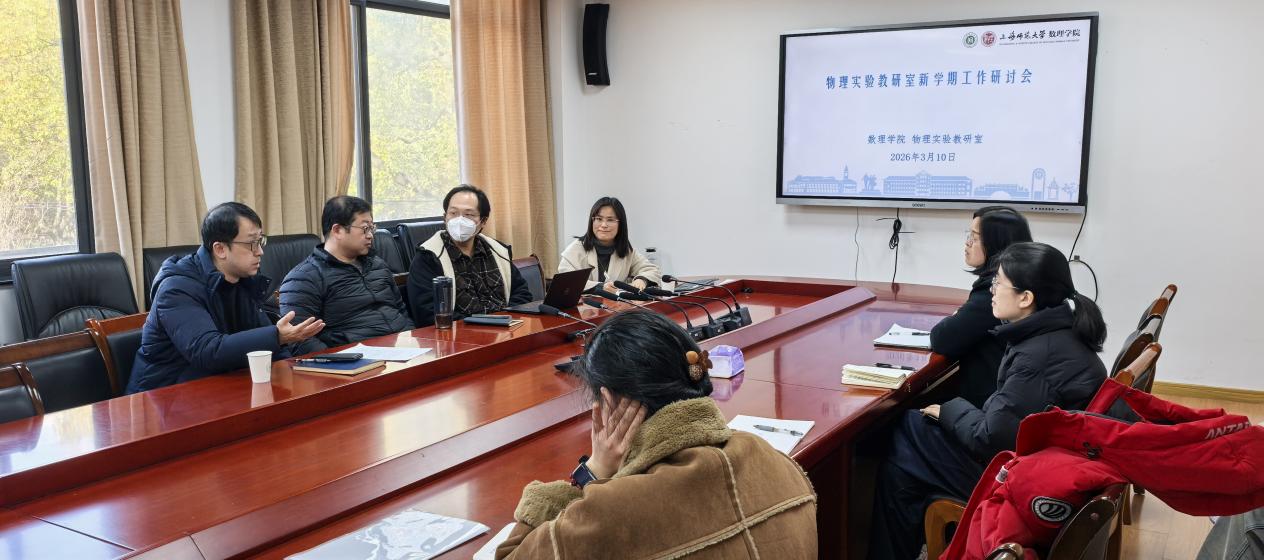 2026310日下午,物理实验教研室在徐汇校区10号楼222会议室召开新学期工作研讨会。会议旨在全面部署新学期重点工作,深入评估教学改革成效,统筹协调各实验室任务,全力保障新学期实验中心教学服务工作平稳、高效运行。学院院长兼上海市级物理实验教学示范中心(上海师范大学)主任刘锋出席会议。